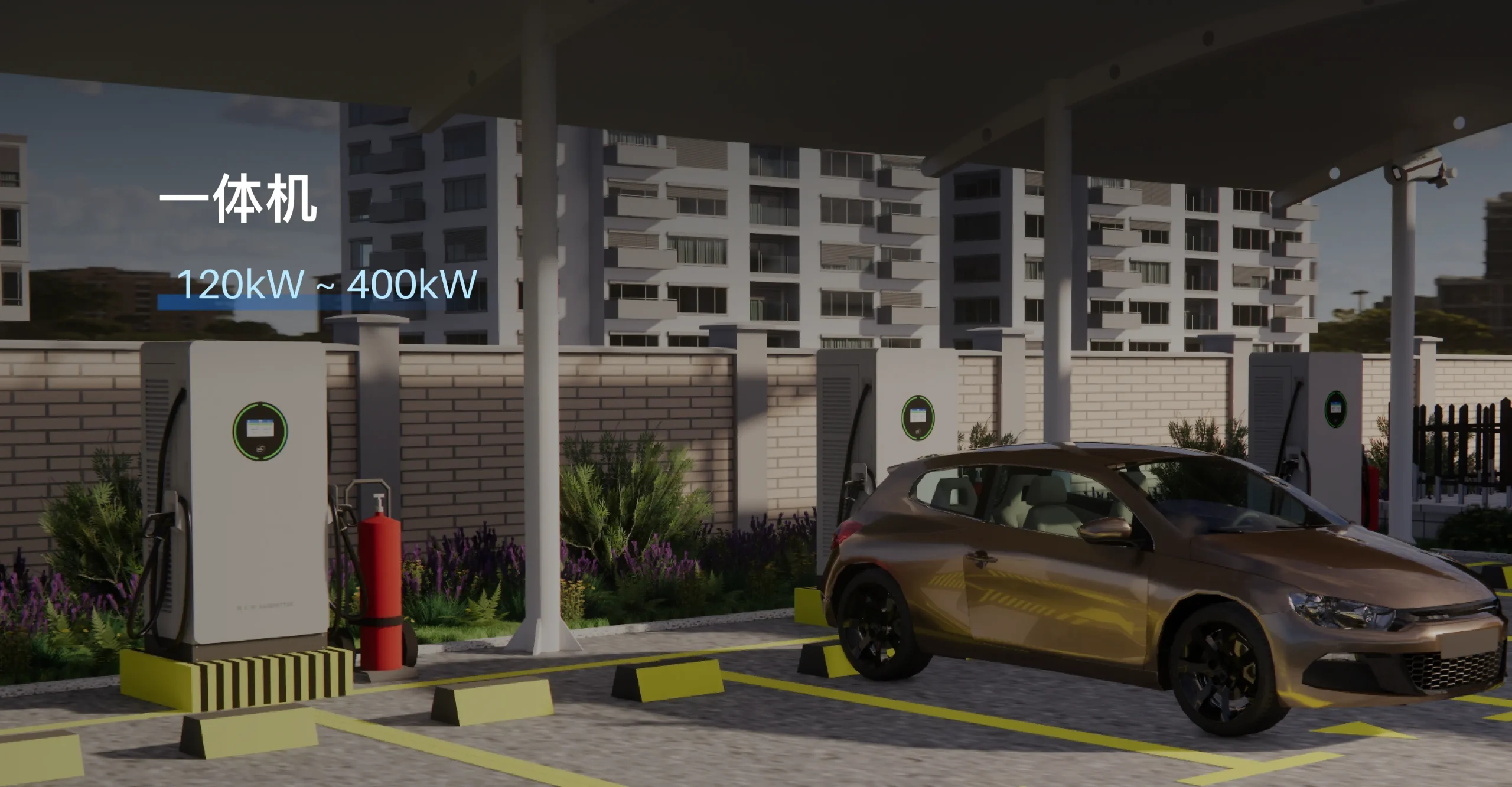 本产品 include 一机单枪、一机双枪、一机四枪等机型. 一体机将功率单元、充电枪等组合成充电柜, 结构简单, 安装方便, 适用于分散式充电站、重卡快速充电站、港口快速充电站等场景.